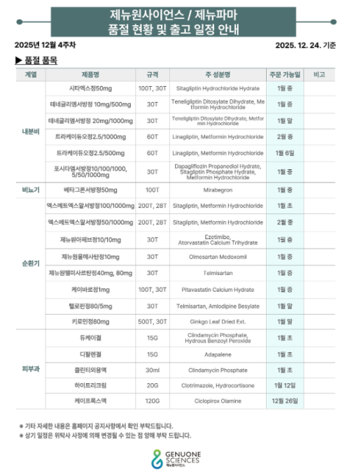 품절미송 12월 26일ㅣ품절 및 입고 일정 안내 작성자관리자 등록일 25-12-26 조회42회 업로드 일시 2025-12-26 품절 & 입고 제뉴원사이언스 본문 12월 29일ㅣ품절 및 입고 일정 안내 12월 24일ㅣ품절 및 입고 일정 안내 목록