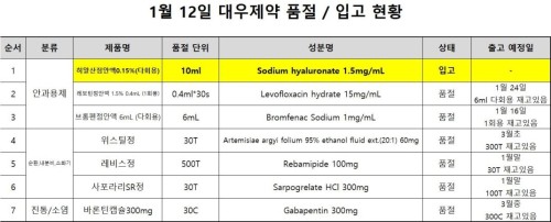 품절미송 01월 13일ㅣ품절 및 입고 일정 안내 작성자관리자 등록일 26-01-13 조회40회 업로드일시 2026-01-13 품절 & 입고 대우제약,삼성제약 본문 01월 14일ㅣ품절 및 입고 일정 안내 01월 12일ㅣ품절 및 입고 일정 안내 목록