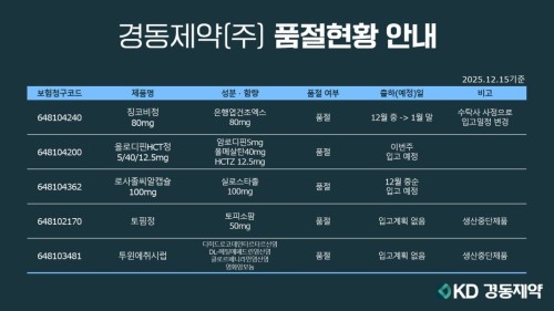 품절미송 12월 15일ㅣ품절 및 입고 일정 안내 작성자관리자 등록일 25-12-15 조회52회 업로드 일시 2025-12-15 품절 & 입고 경동제약, 구주제약, 팜젠사이언스, 대우제약 본문 12월 17일ㅣ품절 및 입고 일정 안내 12월 11일ㅣ품절 및 입고 일정 안내 목록