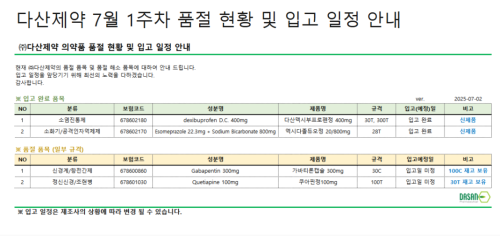 품절/미송 ※ 품절 및 입고 일정 안내 작성자관리자 등록일 25-07-03 조회140회 업로드 일자 2025-07-03 제약사 다산제약, 대웅바이오 판매중단 서울제약, 마더스제약 본문 윤리경영 나선 CSO 법인...‘ISO 37001’ 인증으로 신뢰 강화 “부패방지경영시스템 인증 통해 윤리 경영 토대 확보” 목록