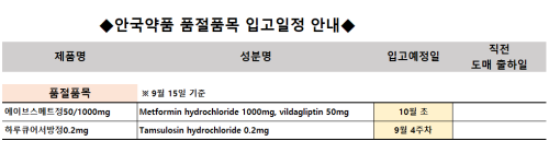 품절미송 ※ 품절 및 입고 일정 안내 작성자관리자 등록일 25-09-15 조회99회 업로드 날짜 2025-09-15 품절 & 입고 안국약품, 동구바이오, 휴비스트제약, 알리코제약, 구주제약, 마더스제약, 유유제약, 팜젠사이언스, 파비스제약 본문 ※ 품절 및 입고 일정 안내 ※ 품절 및 입고 일정 안내 목록