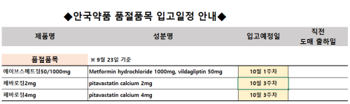 품절미송 ※ 품절 및 입고 일정 안내 작성자관리자 등록일 25-09-23 조회88회 업로드 날짜 2025-09-23 품절 & 입고 안국약품, 일화제약, 대한뉴팜, 진양제 본문 ※ 품절 및 입고 일정 안내 ※ 품절 및 입고 일정 안내 목록