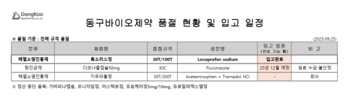품절미송 ※ 품절 및 입고 일정 안내 작성자관리자 등록일 25-09-25 조회85회 업로드 날짜 2025-09-25 품절 & 입고 동구바이오, 팜젠사이언스 본문 ※ 품절 및 입고 일정 안내 ※ 품절 및 입고 일정 안내 목록