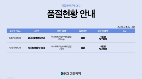 품절미송 04월 22일ㅣ품절 및 입고 일정 안내 작성자관리자 등록일 26-04-22 조회7회 업로드일시 2026-04-22 품절 및 입고 건일바이오,경동제약,다산제약,대웅바이오,메디카코리아,이든파마 본문 04월 23일ㅣ품절 및 입고 일정 안내 04월 21일ㅣ품절 및 입고 일정 안내 목록