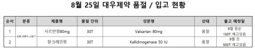 품절미송 ※ 품절 및 입고 일정 안내 작성자관리자 등록일 25-08-25 조회95회 업로드 날짜 2025-08-25 품절 & 입고 대우제약, 휴비스트제약, 유유제약, 구주제약, 마더스제약 본문 ※ 품절 및 입고 일정 안내 ※ 품절 및 입고 일정 안내 목록