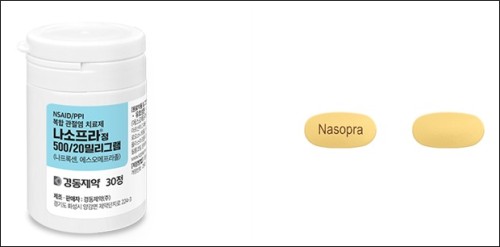 나소프라정은 NSAIDs(비스테로이드성 소염진통제) 나프록센 성분과 PPI(프로톤 펌프 억제제) 에스오메프라졸 성분을 결합한 복합제다.