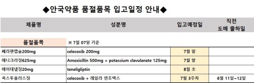 품절/미송 ※ 품절 및 입고 일정 안내 작성자관리자 등록일 25-07-07 조회112회 업로드 일자 2025-07-07 품절ㆍ입고 일정 안국약품, 대한뉴팜, 구주제약, 유유제약, 대우제약, 넥스팜코리아 생산중단ㆍ정산종료 안국약품, HLB제약, 아주약품 본문 ※ 품절 및 입고 일정 안내 ※ 품절 및 입고 일정 안내 목록