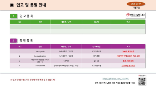 품절/미송 ※ 품절 및 입고 일정 안내 작성자관리자 등록일 25-07-08 조회108회 업로드 날짜 2025-07-08 품절ㆍ입고 일정 안국뉴팜, 휴비스트, 테라젠이텍스 본문 ※ 품절 및 입고 일정 안내 ※ 품절 및 입고 일정 안내 목록