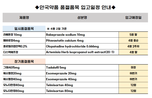 품절미송 04월 02일ㅣ품절 및 입고 일정 안내 작성자관리자 등록일 26-04-02 조회31회 업로드일시 2026-04-02 품절 및 입고 대웅바이오,안국약품,알리코제약,킵스바이오 본문 04월 03일ㅣ품절 및 입고 일정 안내 04월 1일ㅣ품절 및 입고 일정 안내 목록
