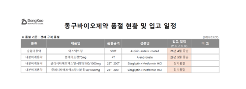 품절미송 03월 27일ㅣ품절 및 입고 일정 안내 작성자관리자 등록일 26-03-27 조회22회 업로드일시 26-03-27 품절 및 입고 대한뉴팜,동구바이오,마더스제약,알리코제약,위더스제약,유니메드,코오롱제약,테라젠이텍스,한국프라임 본문 03월 30일ㅣ품절 및 입고 일정 안내 03월 26일ㅣ품절 및 입고 일정 안내 목록
